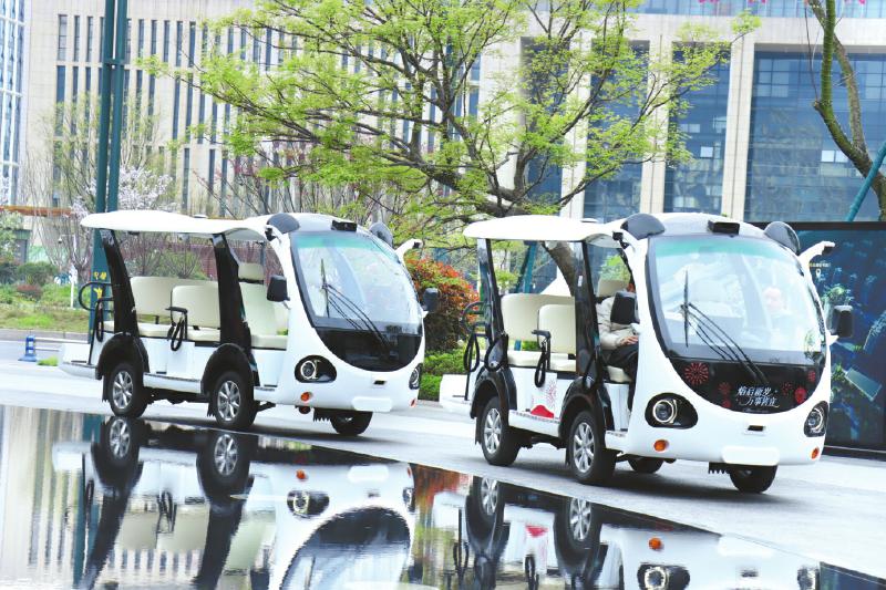 在宜宾市高铁南片区的万象宜宾天地,游客在站点完成扫码购票,一辆熊猫造型的自动无人车便会来到其面前,并将游客送往目的地。这些无人车由智能网联汽车宜宾创新中心自主研发,自去年在该片区投用以来,已帮助该中心接到超千笔订单。